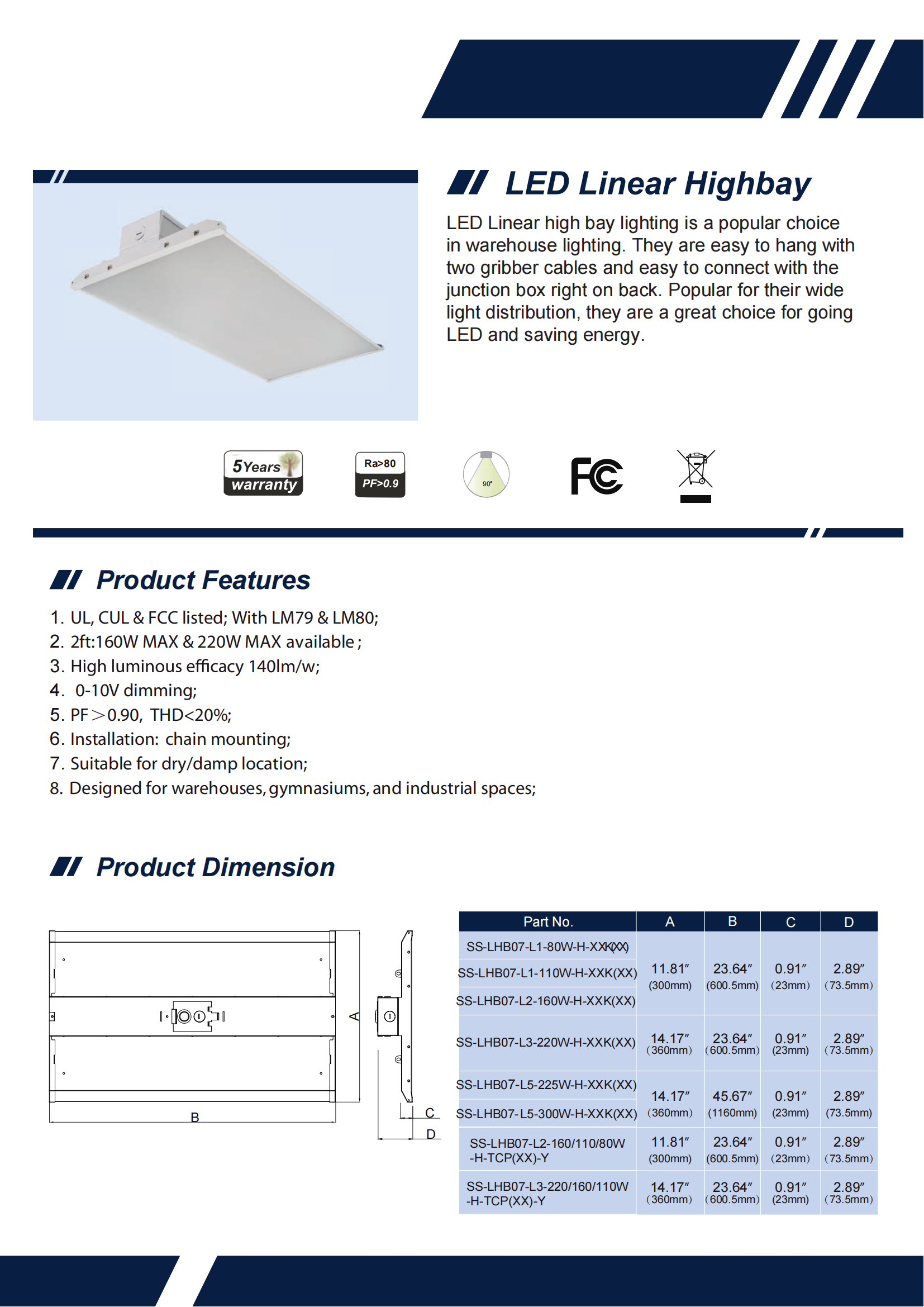 1. UL, CUL & FCC listed; With LM79 & LM80;